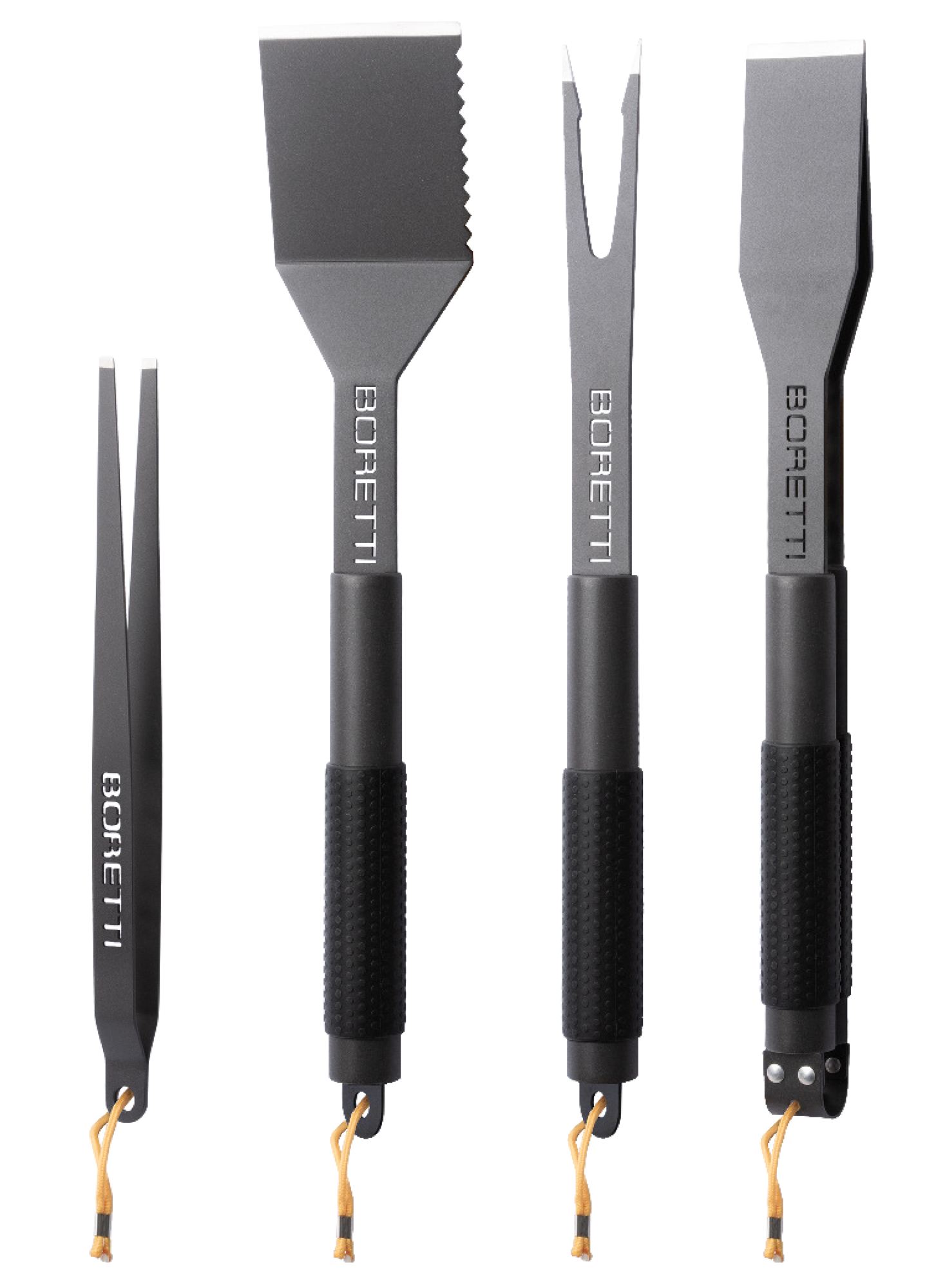 De gereedschapsset van Boretti bevat alle accessoires voor de ultieme barbecuebeleving en is geheel in hetzelfde design als de Barilo barbecue.