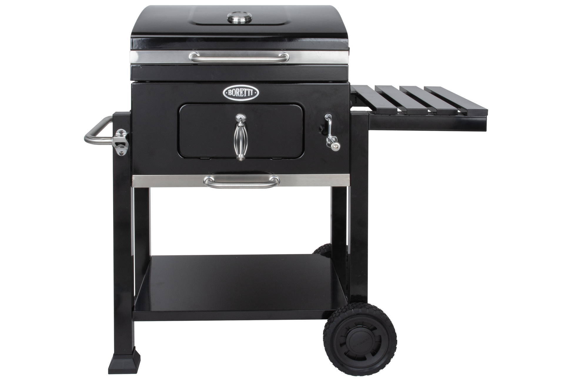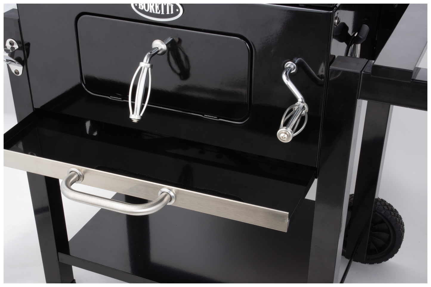 Voor liefhebbers van houtskoolbarbecues is de Boretti Carbone de ideale buitenkeuken. Deze barbecue combineert vele bereidingsmogelijkheden en gebruiksgemak. Extra uniek en handig binnen dit ontwerp is het vlak waarop de kolen liggen. Met de hendel laat u deze eenvoudig op en neer bewegen. De temperatuur kan op deze manier heel makkelijk aangepast worden, zonder het gevaar dat u daarbij uw handen brandt.