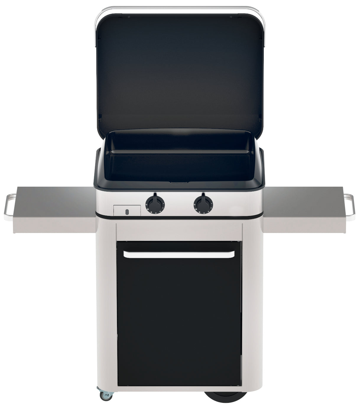 Deze plancha met twee branders is ontworpen met veel aandacht voor detail en is ingebouwd in een trolley van roestvrij staal van maritieme kwaliteit en gepoedercoat gegalvaniseerd staal. De plancha combineert de functionaliteit van een hoogwaardige plancha met een elegant, eigentijds design.