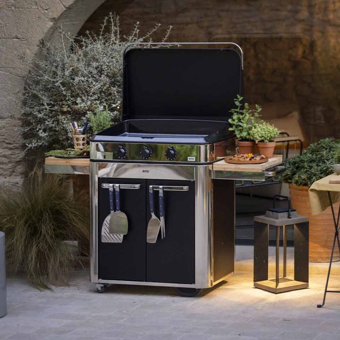 Combo Enosign 80 inox & zwart plancha op trolley gas
