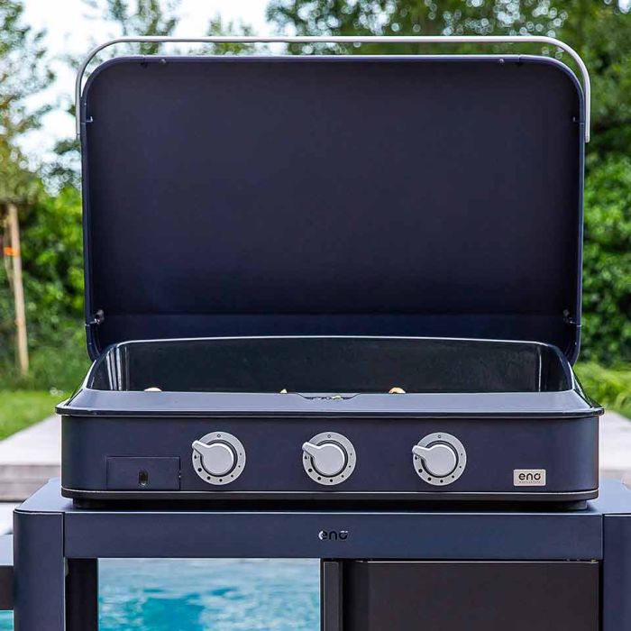 De marineblauwe Enosign plancha combineert design en uitzonderlijke prestaties. Het eigentijdse design past harmonieus in elke buitenruimte. De perfecte aansluiting van de plaat en het frame maakt het uniek en zeer eenvoudig schoon te maken.