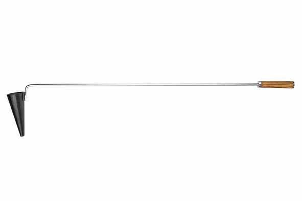 Verwarm de flambadou direct in het vuur tot hij gloeiend heet is. Voeg vervolgens een klontje vet of boter toe in de trechter – zodra dit smelt en begint te druipen, giet je het hete vet over vlees, vis of groenten voor een spectaculaire, sissende afwerking en een intense, rokerige smaak. Perfect voor het bereiden van côte de boeuf, wild of gegrilde groenten.
