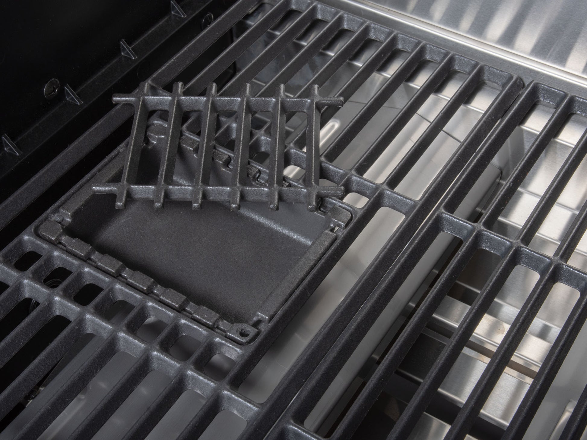 De geëmailleerde gietijzeren roosters garanderen een uitstekende warmtegeleiding en zorgen voor een perfecte grillervaring. Een ingebouwde smokerbox voor houtsnippers voegt een extra dimensie toe aan de smaakbeleving, waardoor gerechten een authentieke rooksmaak krijgen. De dubbelwandige deksel helpt om de temperatuur stabiel te houden, zodat het garingsproces nauwkeurig te controleren is.