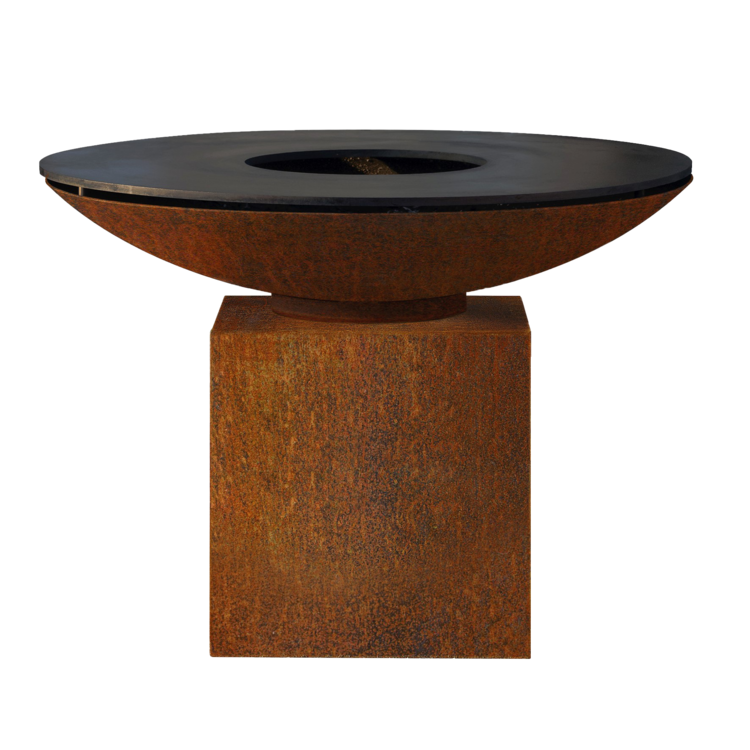 Een Plancha C 100 LOW bestaat uit drie delen: een lage sokkel van 40 cm met daarop een vuurschaal, afgewerkt met een bakplaat bovenaan. Deze vuurschaal 100cm op sokkel kan je gebruiken als warmtebron of om heerlijke gerechten op te maken.