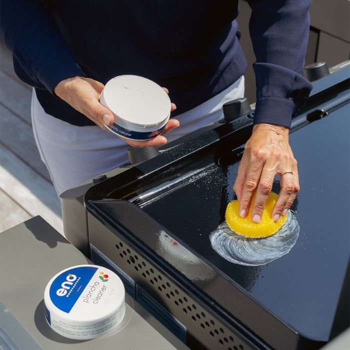 Maak uw plancha efficiënt en eenvoudig schoon met de ENO plancha-reiniger. 100% natuurlijke kleipasta om op uw koude plancha aan te brengen met behulp van een ENO roestvrijstalen reinigingsbal. Absorbeert vet en geeft uw plancha weer glans.