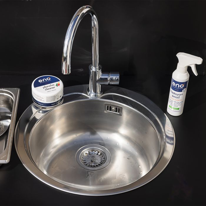 Reinig uw geëmailleerde gietijzeren plaat met onze speciale emaille-reinigingsspray. Deze speciale reiniger voor emaille oppervlakken garandeert een volledige en eenvoudige reiniging die het emaille respecteert en uw kookplaat niet beschadigt. Spray gecertificeerd voor contact met voedingsmiddelen.