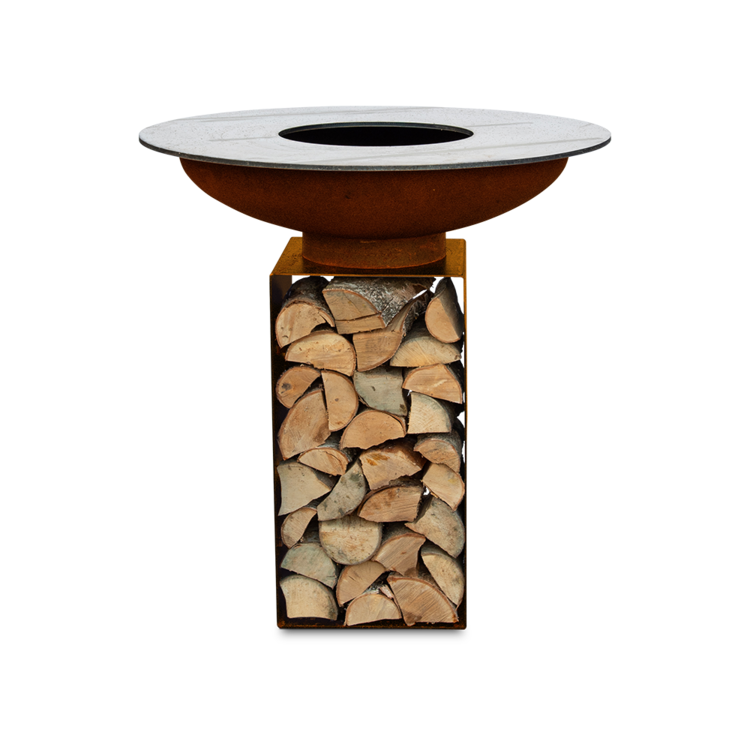 De Plancha Urban heeft een ruime en boller gebogen vuurschaal die op een sokkel wordt geplaatst.