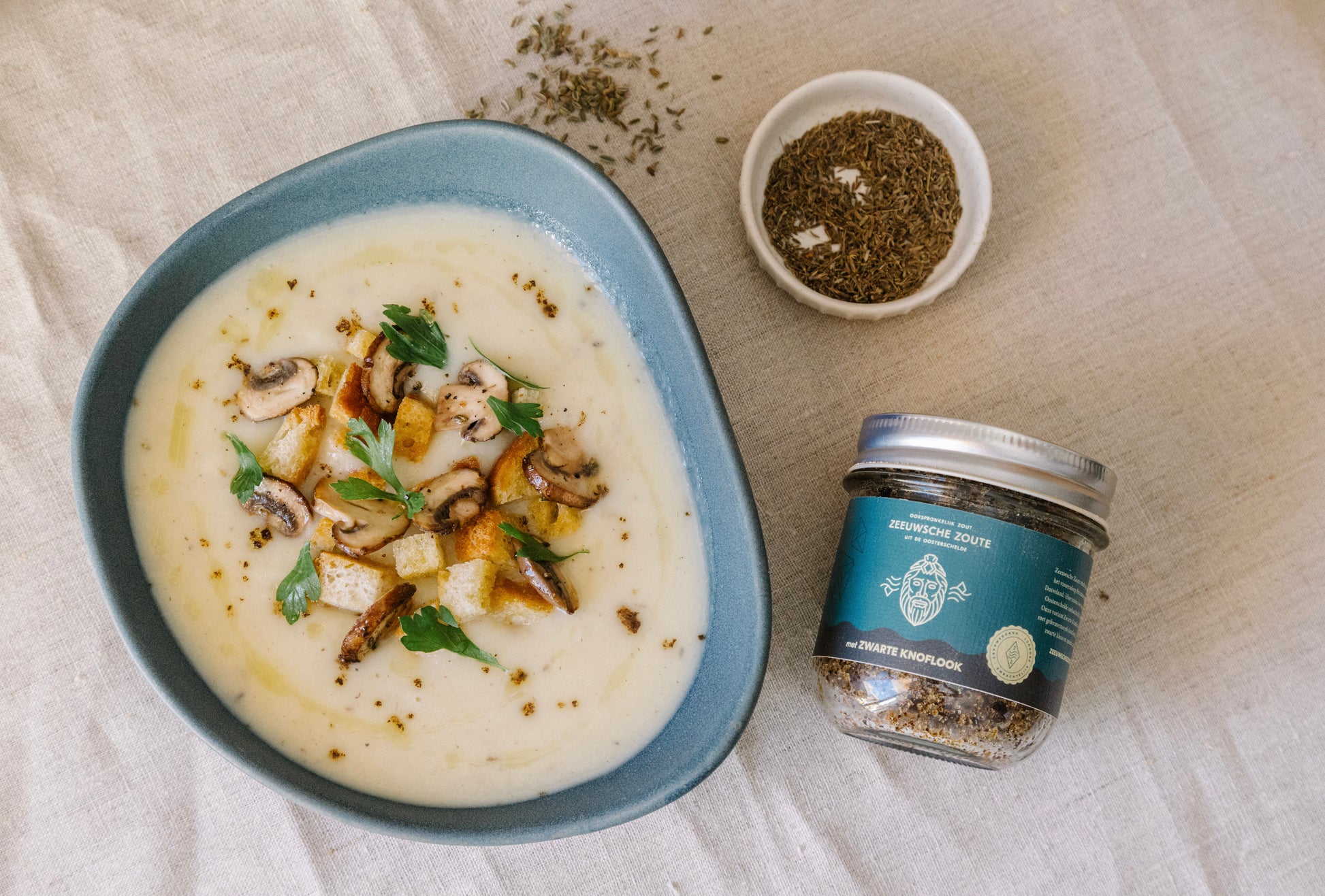 Zeeuwsche Zoute Zwarte Knoflook is perfect voor smaakcombinaties waarin een zachte zoute smaak gewenst is, gecombineerd met de zoete toon die de zwarte knoflook geeft. Deze smaakmaker is de ideale partner van sauzen bij gerechten met kip of groente. Maar ook bij vlees en salades komt deze zoete toevoeging uitstekend tot zijn recht. Naast de volle smaak, voegt de zwarte knoflook ook een heerlijke geur toe aan je gerecht. Het glazen potje geeft je de mogelijkheid om het zout te bewaren en bij te vullen na gebruik. Zwarte knoflook wordt geproduceerd door de standaard witte knoflookbol door middel van een zorgvuldig gecontroleerd verwarmingsproces te fermenteren in enkele weken. De suikers en aminozuren reageren en produceren samen melanoïdine – die verantwoordelijk is voor de rijke zwarte kleur. Let op! Zeeuwsche Zoute Zwarte Knoflook is vochtiger dan andere varianten waardoor het niet in zoutmolens gebruikt kan worden.